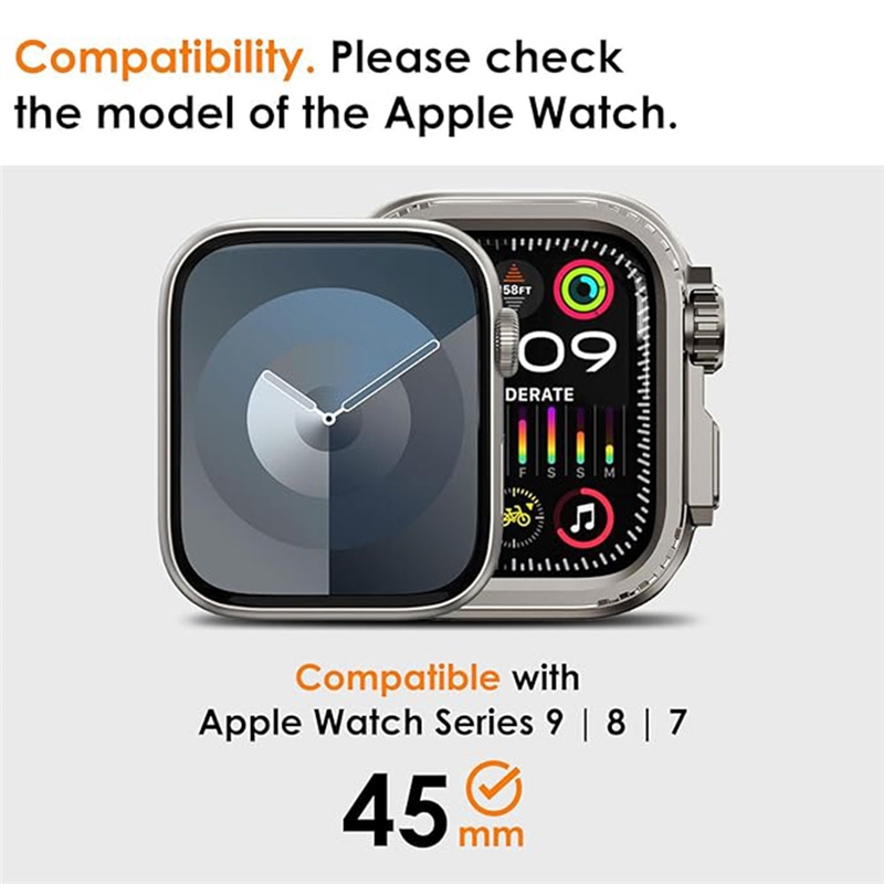کاور فلزی ULTRA LOOK-Rugged به گونه‌ای طراحی شده که با نصب آن، اپل واچ ۴۵ میلی‌متری شما به سرعت به ظاهر اپل واچ اولترا تبدیل می‌شود. این ارتقاء ظاهری بی‌نیاز از هیچ گونه تغییرات پیچیده بوده و به سادگی و بدون نیاز به تغییر ساختار اصلی ساعت انجام می‌شود. طراحی دقیق و هماهنگ این کاور، ظاهری لوکس و حرفه‌ای به اپل واچ شما می‌بخشد و توجه همه را به خود جلب می‌کند.