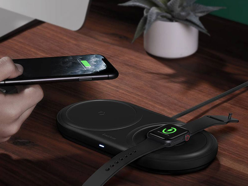 یکی از مزیتهایی که این شارژر بی سیم دارد این است که شما به طور همزمان میتوانید دو دستگاه را باهم شارژ کنید .برای شارژ کردن کافیست دستگاه ها را روی قسمت مشخص شده بگذارید .