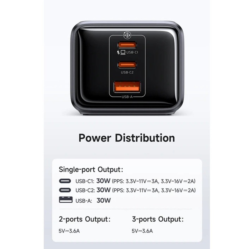 شامل سه سوکت برق، دو پورت تایپ سی و یک پورت یو اس بی دارای کابلی به طول 1.5 متر سوکت های برق سازگار با دوشاخه ایرانی فناوری پیشرو نیترید گالیوم (GaN) حداکثر توان خروجی پورتها 30 وات ساخته شده از پلی کربنات نسوز مقاوم در برابر شعله