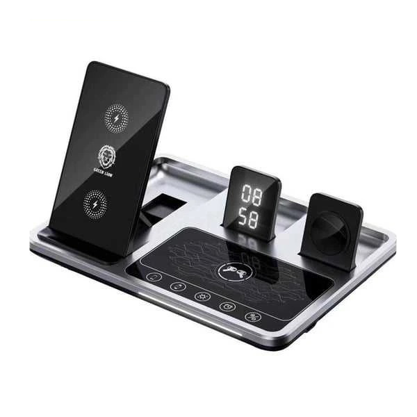 شارژر ولیرلس 4 کاره رو میزی گرین لاین Green lion Wireless Charging Station Gray GN4IN1WCSGY