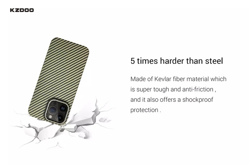 5 برابر سخت تر و ضد ضربه زیرا از فولاد ساخته شده،از مواد الیاف Kevlar بسیار مقاوم و ضد اصطکاک ، و همچنین دارای یک محافظ ضد ضربه است.