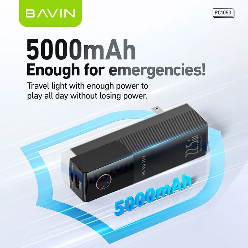 شارژر دیواری و پاوربانک 5000 باوین Bavin PC1053 توان 22.5 وات