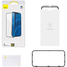 در پک این محصول 2 عدد گلس بیسوس SGQP020101 قرار داده شده تا اگر در نصب دچار مشکل شدید، یا به هر طریقی گلس آسیب دید، یک گلس زاپاس داشته باشید. همچنین پدهای تمیزکننده برای پاک کردن صفحه نمایش (پش از نصب گلس) برای شما قرار داده شده تا روند نصب را به راحتی و بدون هیچ مشکلی طی کنید. همانطور که اشاره شد، یک فریم نیز برای نصب راحتتر وجود دارد که میتوانید به وسیله آن پروسه نصب را راحتتر طی کنید.