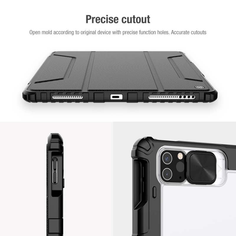کیف کلاسوری نیلکین مدل Camshield Bumper مناسب برای تبلت اپل iPad Pro 12.9 (2021), iPad Pro 12.9 (2020) محصولی از شرکت نیلکین است که محافظت از تبلت شما را بر عهده دارد.از ویژگی این کیف کلاسوری محافظت از لنز IPad شما میباشد که با وجود محافظ کشویی کیف در معرض خط و خش نخواهد بود. این کیف کلاسوری از tpu و پلاستیک سخت ساخته شده است و به صورت سه بعدی محافظت میکند یعنی سرتاسر تبلت را محافظت مینماید و با ظاهری ظریف زیبایی خاصی به تبلت میبخشد. این کیف کلاسوری از یک نوع پوشش ساخته شده که در برابر لغزش مقاوم است و تبلت شما را در برابر ضربه و خراش محافظت میکند.