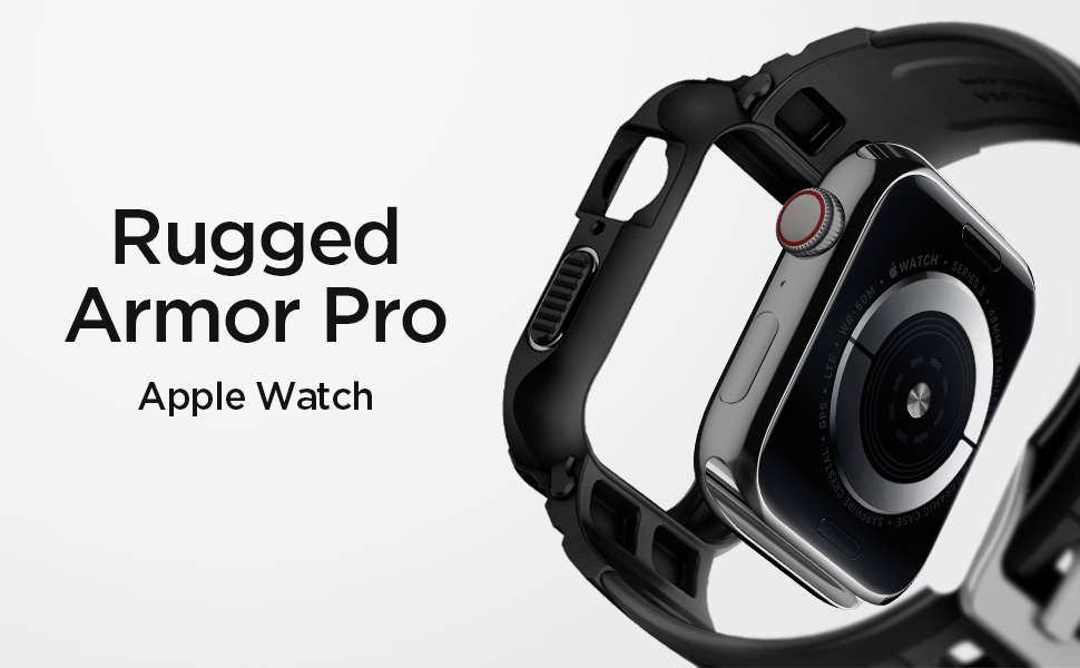 بند و کاور اپل واچ اسپیگن سری Rugged Armor Pro یکی محصولات این کمپانی می باشد که از یک گادر محافظ که به یک بند متصل می باشد، تشکیل شده است. این محافظ برای اپل واچ های سایز 44 و 45 طراحی شده است.
