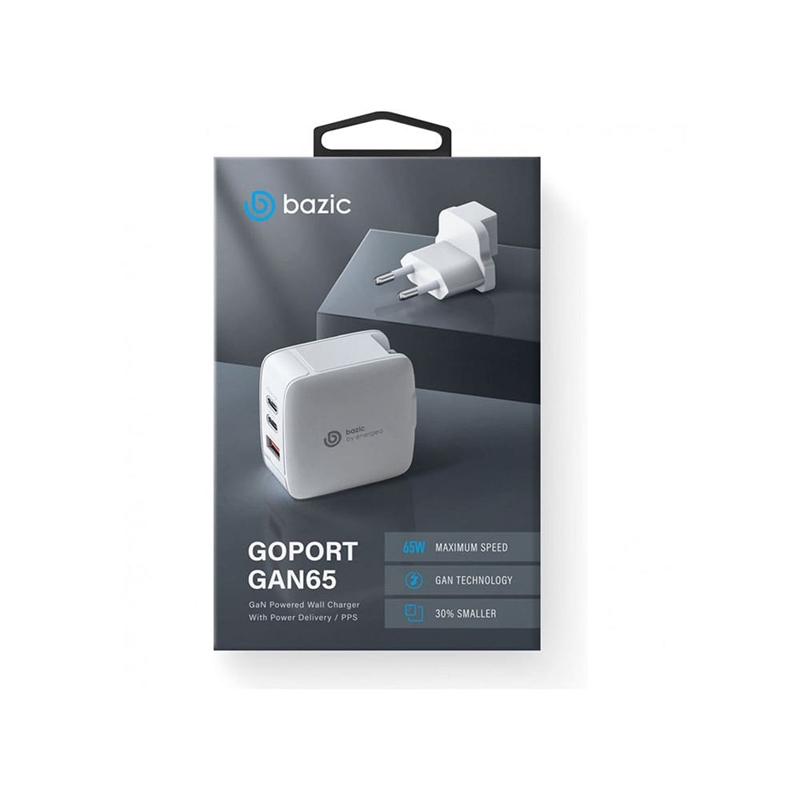 این شارژر قوی با توان خروجی 65 واتی می تواند با در اختیار داشتن دو خروجی تایپ C و یک خروجی تایپ A بصورت همزمان 3 دستگاه را شارژ کند . با افزایش توان گچت ها و نیاز به توان بالاتر برای شارژ آنها ، موضوعی که بیشترین محدودیت را ایجاد می کند ، گرمای تولید شده توسط شارژر می باشد . در شارژر دیواری 65واتی بازیک Bazic GoPort GaN65 از تکنولوژی جدید گالیوم نیتریدی بجای تراشه های سیلیکونی استفاده شده است . به این ترتیب در ابعاد کوچکتر گرمای کمتری تولید می شود . اگر قرار بود این شارژر با تراشه سیلیکونی ساخته شود حد اقل 30% ابعاد بزرگتری داشت . و این درحالی بود که در زمان استفاده از آن حد اقل 30 درجه حرارت بیشتری از بدنه آن متساعد می شد.