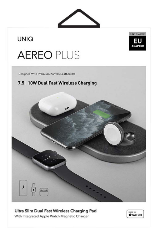 شارژر بی سیم سریع UNIQ Aereo Plus 3in1 7.5 / 10W با خاکستری زغالی نسخه جدید از شارژر محبوب Aereo است که پیش از این توسط برند معتبر یونیک عرضه شده بود و توانست با نوآوری و زیبایی محصول در کنار کارایی و کیفیت ساخت بالایی که داشت به فروش بالایی در بازار جهانی و از جمله در ایران دست یابد .