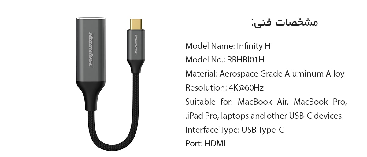 کابل مبدل USB-C به 4K 60Hz HDMI راک رز مدل Infinity H