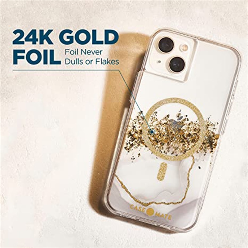 مرمر کارات: این قاب نیمه مات با طراحی مرمر برای آیفون 14 پلاس با براده های طلای 24 عیار به زیبایی طبیعی دستگاه شما اجازه میدهد تا جلوهای از لوکس بودن داشته باشد. و در عین حال عملکرد آن بی نقص و کاملا محافظتشده باقی بماند. دارای یک سطح صاف با زرق و برق تعبیه شده در داخل یک قاب رزین شفاف است که استفاده و حمل آن را بسیار آسان می کند. آیا هیچ مورد دیگری را سراغ دارید که حس لوکس بودن را بیشتر از طلا انتقال دهد.