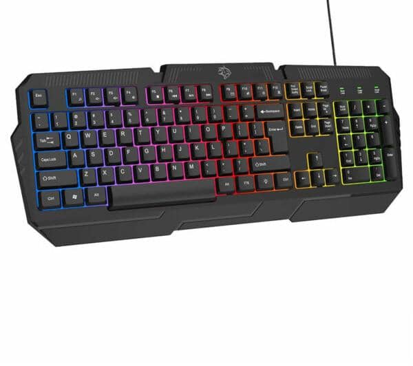 ⌨️ کیبورد گیمینگ: طراحی ارگونومیک با نور پسزمینه RGB برای تجربهای جذاب در شب و دقت بالا در تایپ و گیمینگ.