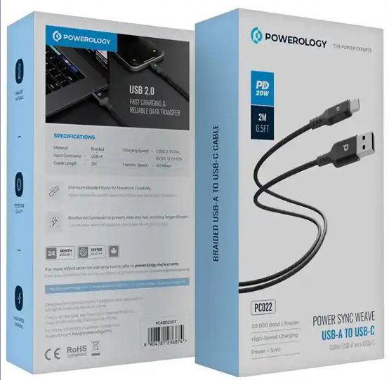 کابل تایپ سی 20 وات پاورولوژی Powerology PCAB022GY با طول 2 متر یک انتخاب عالی برای کسانی است که به دنبال کابلی مقاوم، سریع و کاربردی هستند. این کابل با پشتیبانی از توان ۲۰ وات فست شارژ، امکان شارژ ایمن و سریع انواع گوشی‌های هوشمند، تبلت‌ها و دیگر دستگاه‌های مجهز به درگاه USB-C را فراهم می‌کند.