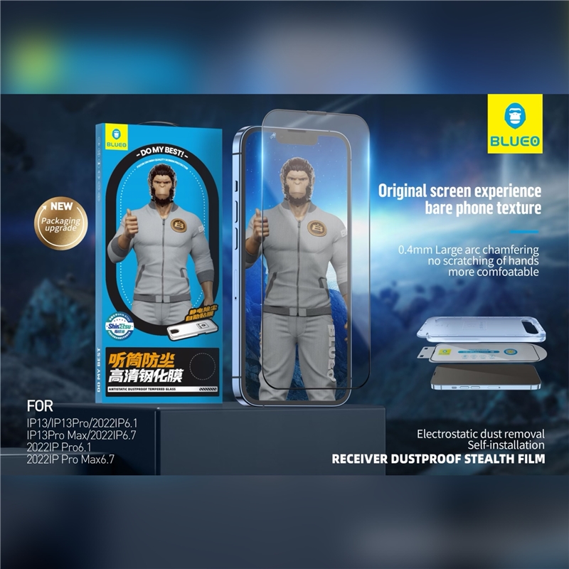 محافظ صفحه بلو Blueo Anti Dust HD Glass Anti Static With Applicator مخصوص آیفون، انتخابی هوشمندانه برای کسانی است که به دنبال محافظت کامل، نصب آسان و تجربه‌ای شفاف از نمایشگر گوشی هستند.