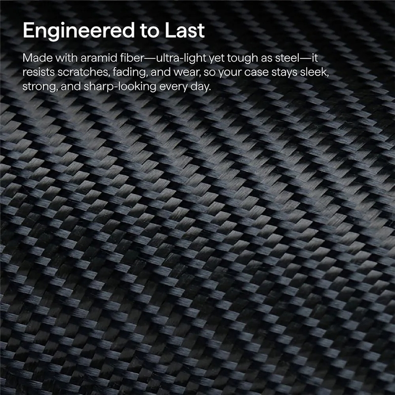 سایر توضیحاتبافت 600D Twill از آرامید برای grip لوکس و مقاوم ✅ فناوری PitaTap برای پوشش باریک دکمه‌ها با کنترل touch ✅ طراحی ultra-slim با ضخامت زیر 1mm ✅ محافظت مینیمال در برابر خراش و ضربه‌های سبک ✅ سازگاری با MagSafe و شارژ بی‌سیم ✅ وزن feather-light برای حمل آسان روزانه