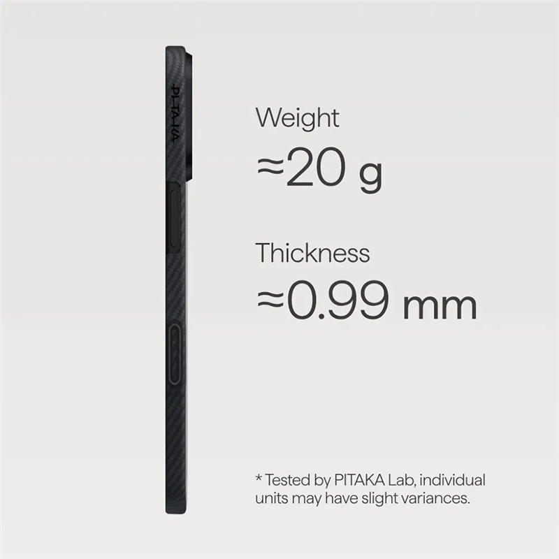 این باریکی، قاب PITAKA 600D Twill PitaTap را مانند پوست دوم گوشی می‌سازد و راحتی حمل را افزایش می‌دهد.