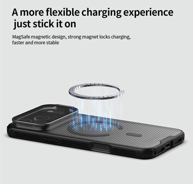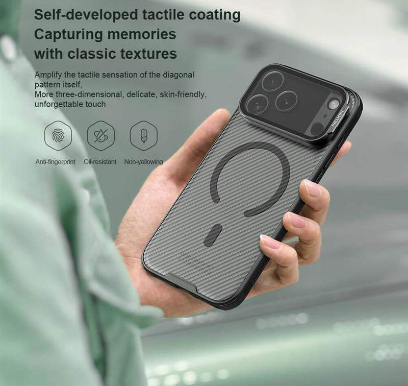 اگر دوست دارید استایلی شیک و جذاب داشته باشید و از گوشیتان محافظ کنید.کاور نیلکین مدل Camshield Prop Magnetic Clear Transparent Lens Guard گزینه ایده‌آلی است.این قاب استایلی خاص دارد چرا که بدنه نیمه شفاف آن تلفیقی از زیبایی کاور و بدنه گوشی را به ارمغان میاورد . کیفیت و کارایی بسیار بالایی هم دارد.کاور نیلکین مدل Camshield Prop Magnetic Clear ظریف و خوش‌دست است.باتکنولوژی‌های مدرن طراحی شده است و ظرافت‌ های زیادی دارد.نکته بسیار جالب این کاور محافظ ویژه از قسمت لنز ها به صورت لبه فلزی و داخل شیشه ای است که طارحی بی نظیری است . از دست‌تان نمی‌لغزد .این قاب نسبت به سایر قاب‌های سخت از نظر امنیت و امکانات و همچنین دوام در سطح بسیار بالاتری قرار دارد. Camshield Prop Magnetic Clear Transparent Lens Guard بصورت Magnetic یا مغناطیسی طراحی شده است به این معنی که میتوانید بواسطه آن به راحتی گوشی همراه خود را حتی در هنگام داشتن قاب بر روی آن به صورت بی سیم شارژ کنید ویا از اکسسوری های مختلفMagneticاستفاده کنید.کاور نیلکین مدل Camshield Prop Magnetic Clear Transparent Lens Guard علاوه بر امر محافظت از گوشی و زیبایی،دوربین گوشی رانیز بخوبی پوشش میدهد.کاور نیلکین مدل از جنسPCسخت بوده وبخش های اطراف آن دارای خط های موربی می باشد که برای جلوگیری از لغزیدن گوشی در دستان شما طراحی شده است.همچنین قسمت پشتی قاب نیز از همین طرح پیروی می کند.امامزیت اصلی این قاب محافظت کامل از دوربین گوشی است.در قسمت پشت کاور نیلکین مدل Camshield Prop Magnetic Clear Transparent Lens Guard یک بخش متحرک وجود دارد که مانند یک درپوش لولایی روی دوربین گوشی رامی پوشاند.این محافظ،به صورت بسیار محکم وبه شکل فلزی با کیفیت باطرح زیبای نیلکین در قسمت بیرونی کاور طراحی و ساخته شده است.در صورت تمایل می توانید این درپوش را کنار زده و از دوربین خود استفاده کنید.از این درپوش می توان به عنوان استند استفاده کرد و گوشی را روی سطح قرار داد.این قاب کاملا متناسب با ابعاد گوشی طراحی شده است.تمام قسمت پشت و لبه های اطراف را به خوبی پوشش می دهد و قسمت پورت و اسپیکرها را بخوبی برش داده است. پشت این قاب به طور نیمه شفاف و کدر طراحی و ساخته شده تا ترکیب رنگ خود گوشی و این قاب ، زیبایی خاصی رو برای شما به ارمغان می آورد.