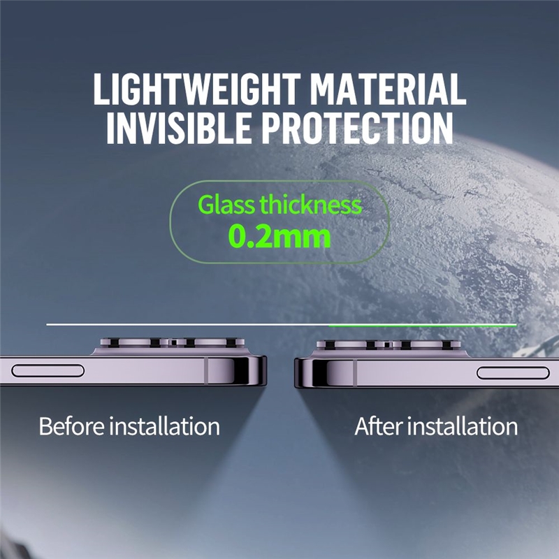 ویژگی ها-عکسبرداری با وضوح بالا با کیفیت تصویر دست نخورده -شیشه کورنینگ با پوشش AR -فرآیند آبکاری فوق العاده باریک و نامرئی،حس وجود صفر مشابه لنز اصلی -محافظت با شیشه سکوریت شده با قاب فلزی -سختی: 9H -عملکرد: ضد خش،ضد اثر انگشت،ضد انفجار،شفافیت بالا،ضد شوک،مقاوم در برابر کثیفی،پوشش کامل،ضد گرد و غبار،آب و روغن،فوق العاده نازک،بدون حباب،HD CLEAR،نصب آسان و سریع -مواد اولیه: کورنینگ گلس + چسب AB + قاب آلیاژ آلومینیوم -کیفیت: A++، درجه AAA -ظاهری زیبا،طراحی منحصر به فرد -حفاظت قوی تر با پوشش کامل لنز،لمینیت بسته و محافظت کامل -99% انتقال نور رنگ واقعی را منتقل می کند. -100% کیفیت عکس اصلی را حفظ می‌کند محافظ لنز مجزا بر عکس‌های شبانه و فلاش تأثیر نمی‌گذارد و به راحتی عکس خراب نمیشود. -مواد سبک وزن،محافظ نامرئی