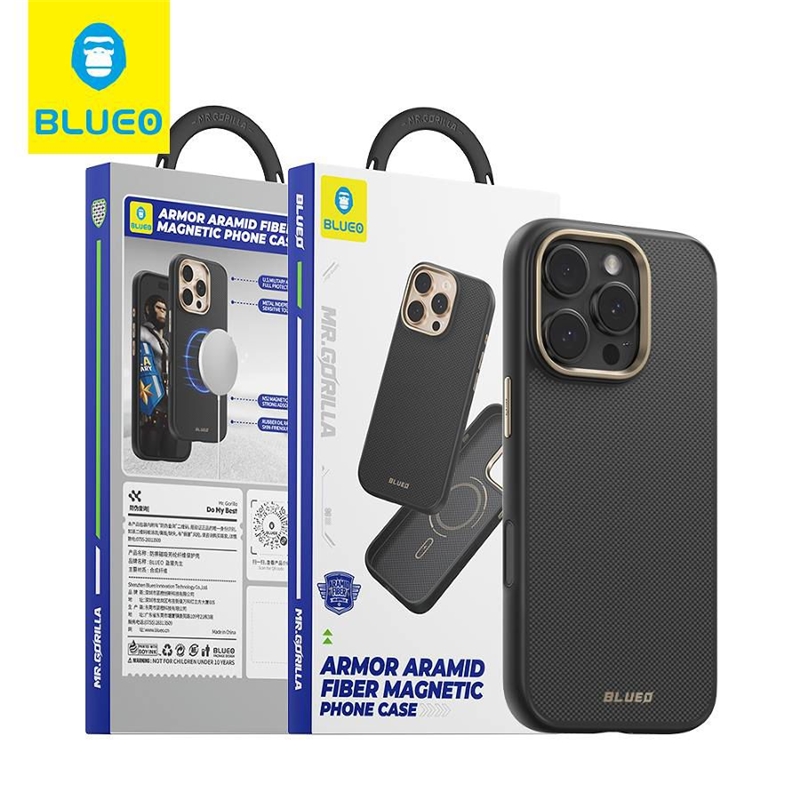 قاب Blueo Armor Aramid Fiber Magnetic Phone Case یک انتخاب لوکس و قدرتمند برای کسانی است که به دنبال ترکیب استحکام بالا، وزن سبک و پشتیبانی از مگ‌سیف هستند. این قاب از جنس الیاف آرامید (Aramid Fiber) ساخته شده؛ متریالی که در صنایع پیشرفته مانند هوافضا و تجهیزات نظامی استفاده می‌شود و به مقاومت فوق‌العاده در برابر ضربه و خط‌وخش شهرت دارد.
