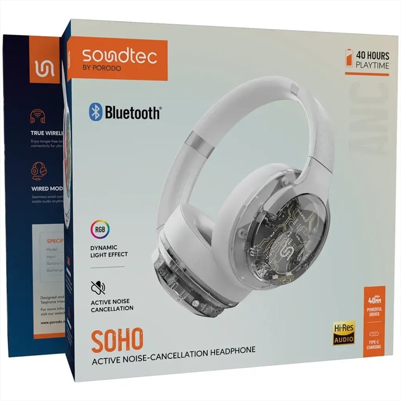 هدست Porodo Soho به فناوری Bluetooth مجهز است که اتصال سریع، پایدار و کممصرف را تضمین میکند. این اتصال بدون بریدگی و با تأخیر بسیار کم، برای تماس، بازی و پخش موسیقی مناسب است.