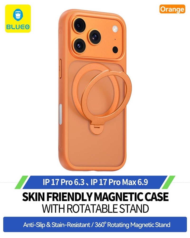 قاب برند بلو مدل Blueo Skin Friendly Frosted Anti-drop Case Ring Stand 360° مناسب برای Apple iPhone 17 Pro Max بسیار مقاوم و با کیفیت پوشش کامل