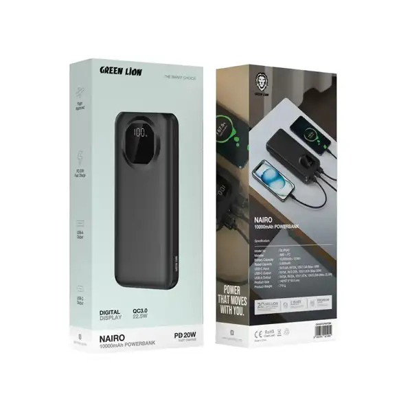 پاور بانک 10000 گرین لاین Green Lion Nairo PD 20W Power Bank GNNAR10PBPDBK
