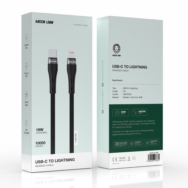 کابل شارژ تایپ سی به لایتنینگ 1 متر گرین لاین Green Lion Braided Cable GNBRUSCLGBK