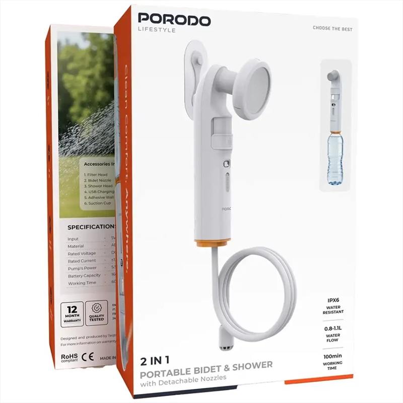 با Porodo 2in1 Portable Bidet & Shower، همیشه یک راهکار بهداشتی و کاربردی همراه دارید و راحتی و پاکیزگی را در هر مکان تجربه میکنید
