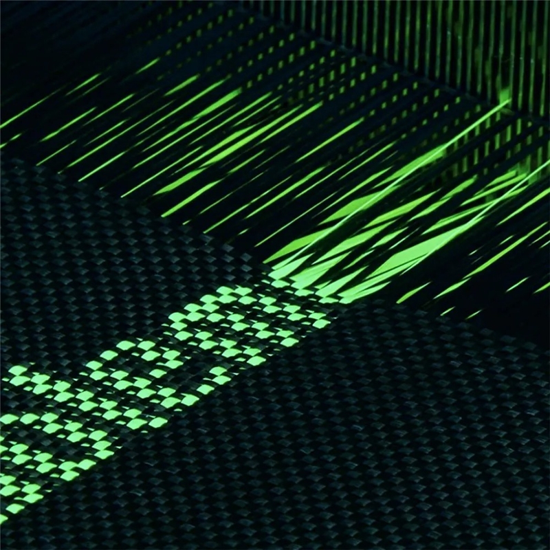 انعطافپذیری و نازکی: برخلاف مواد نورانی قدیمی که معمولاً به صورت پودر یا لایههای ضخیم استفاده میشدند، Lumintex™ یک فیبر نازک و انعطافپذیر است که به راحتی در فرآیند بافت (Fusion Weaving) با الیاف آرامید ترکیب میشود. این یعنی قاب همچنان باریک و سبک باقی میماند.