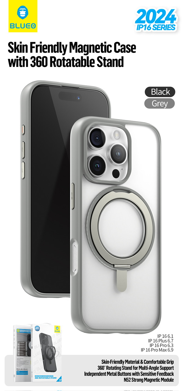 قاب برند بلوئو مدل Blueo crystal magsafe case with rotatable stand مناسب برای Apple iPhone 15 Pro