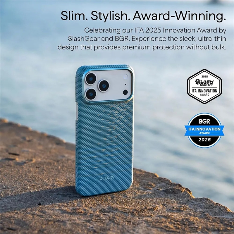 اگر پاسخ شما مثبت است، قاب آیفون ۱۷ پرو مکس PITAKA Ultra Slim Lucid Blue دقیقاً همان چیزی است که به دنبالش هستید. این محصول با الهام از بازی نور بر روی سطح آب و انعکاسهای طلایی خورشید طراحی شده است. با بهرهگیری از فناوری انحصاری Fusion Weave – LightRipple، بافت این قاب به گونهای است که نور را در زوایای مختلف به شکلی متفاوت بازتاب میدهد و جلوهای سیال، زنده و پویا خلق میکند. این فقط یک قاب نیست؛ این تکهای از طبیعت است که در دستان شما جان میگیرد.