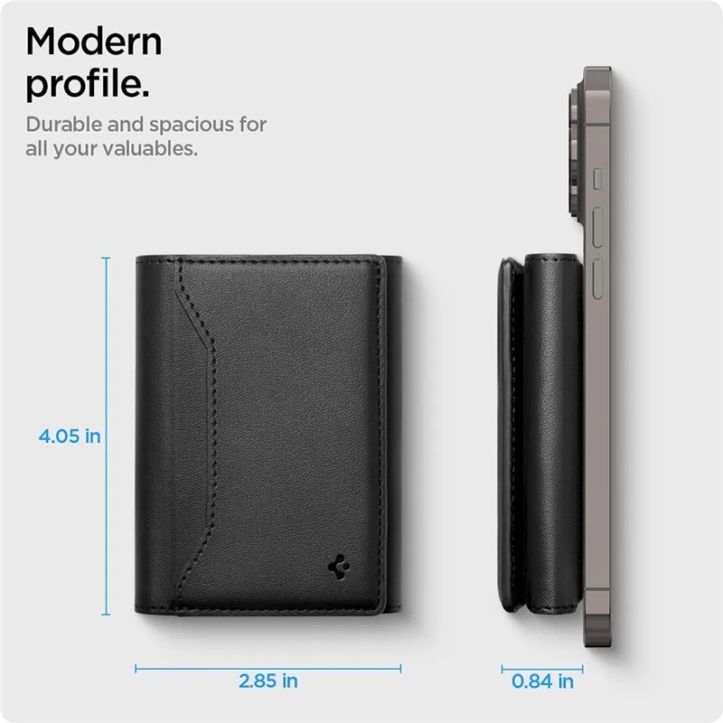 برجسته‌ترین ویژگی این کیف کارت و پول اسپیگن، طراحی تاشو (Trifold) آن است: