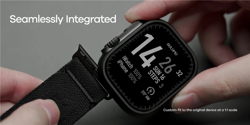 طراحی ۱:۱ بدون فاصله (Seamless Fit): بند به گونه‌ای طراحی شده که کاملاً بدون فاصله و هماهنگ با بدنه اپل واچ قرار می‌گیرد و ظاهری یکپارچه و زیبا ایجاد می‌کند.