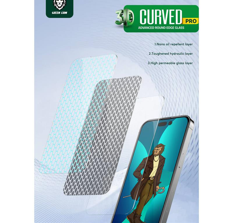 گلس گوشی یک لایه محافظی می باشد که از صفحه گوشی در برابر ضربه و خط و خش محافظت می کند.گلس ها در جنس ها و کاربرد های متفاوتی ساخته می شوند و یکی از مهمترین لوازم جانبی گوشی می باشد که باید بعد از خرید گوشی انجام دهیم تا با خیال راحت از آن استفاده کنیم.شرکت گرین یکی از بهترین تولید کنندگان لوازم جانبی گوشی موبایل در چین،امارات و خاورمیانه میباشد.محافظ صفحه نمایش گرین مدل 3D Curved Pro ،کیفیت بینظیر آن را از سایر گلسها متمایز و تبدیل به گزینهای ایدهآل برای محافظت از ال سی دی موبایلتان خواهد کرد.محافظ صفحه نمایش گرین مدل 3D Curved Pro تمام صفحه نمایش گوشی را میپوشاند. لبههای آن درست متناسب با صفحه نمایش هستند. در نتیجه پوشش کامل آن محافظت بینقصی به ارمغان میآورد.شیشه بکار رفته در ساخت گلس از مرغوبترین نوع آن است.استفاده از این متریال مستحکم، کیفیت و دوام گلس را برای سالیان طولانی تضمین میکند.گلس طی فرآیند پیشرفتهای از چندین لایه از جمله لایهی شیشهای با استحکام بالا، لایهی نشکن و ضدضربه، لایهی نانو دافع روغن، لایهی هیدرولیک لمسی و لایهی دارای لبههای منحنی و دور چسب تشکیل شده است. این گلس سه بعدی ضدخش ضخامت ناچیز 0.33 میلی متری دارد. این پوشش نازک هرگز اختلالی در عملکرد تاچ ایجاد نکرده و حساسیت لمسی بالای آن را حفظ میکند.پوشش اولئوفوبیک گلس از نفوذ آب و جا ماندن اثر انگشت و لکههای چربی روی آن جلوگیری میکند. بدین ترتیب همیشه صفحه نمایشی تمیز و عاری از آلودگی خواهید داشت. با این گلس دیدی شفاف و با کیفیت HD از تصاویر صفحه نمایش خواهید داشت. به علاوهی اینکه گلس با جلوگیری از انعکاس نور از چشمانتان محافظت خواهد کرد. برای افزایش مقاومت گلس، لبههای آن ضخیمتر و محکمتر ساخته شدهاند. همچنین طراحی منحنی لبهها باعث شده تا گلس بطور کامل صفحه نمایش را پوشش دهد.برخلاف سایر گلسهای دور چسب که حاشیه بیشتری دارند، این گلس لایهای نازک از چسبی محکم را دور تا دور خود دارد.این حاشیهی باریک دید لبههای صفحه نمایش را مسدود نمیکند.این گلس به صورت فول صفحه یا همانedge to edgeطراحی شده و کامل اندازه گوشی موبایل میباشد و کل صفحهنمایش را پوشش میدهد.همچنین این گلس کاملا CaseFriendly هست یعنی با گذاشتن قاب روی گوشی ،گلس به هیچ عنوان بلند نمیشود.