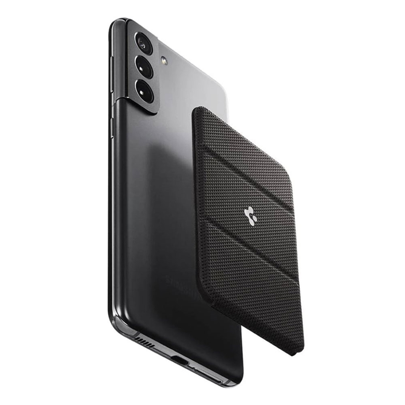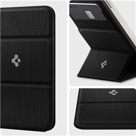 باید اضافه کنیم که کیف هوشمند تاشو اسپیگن مدل Magnetic Card Wallet Smart Fold دارای ویژگیهای بیشتری نیز می باشد. این کیف هوشمند به شما اجازه می دهد که گوشی هوشمند خود را به آن متصل کنید و به عنوان یک استند استفاده کنید. این ویژگی، برای دیدن فیلم و یا پخش موسیقی، استفاده از صفحه نمایش گوشی، بسیار مناسب است.