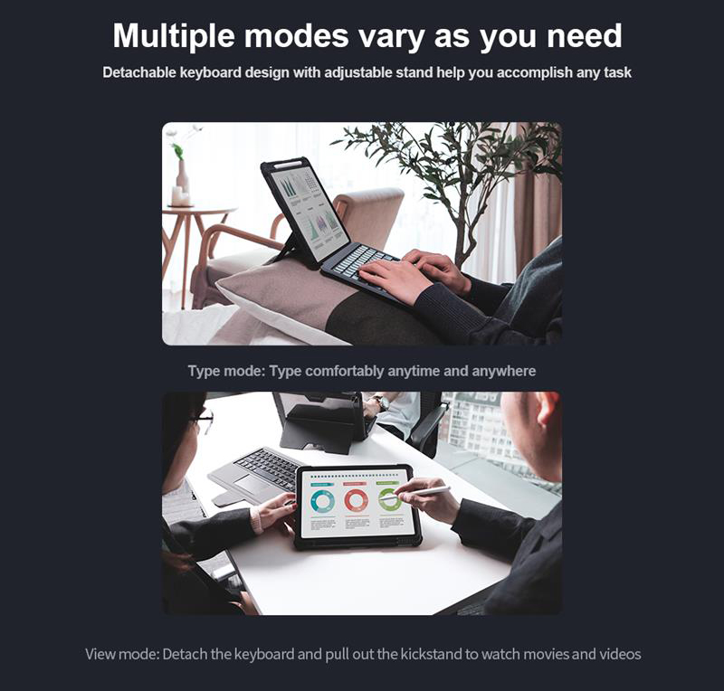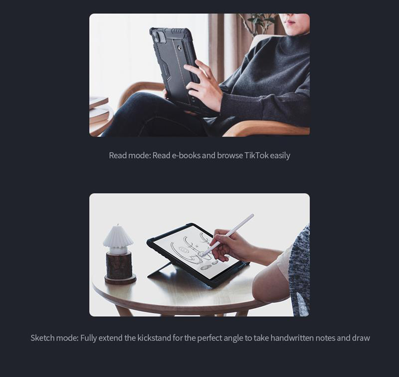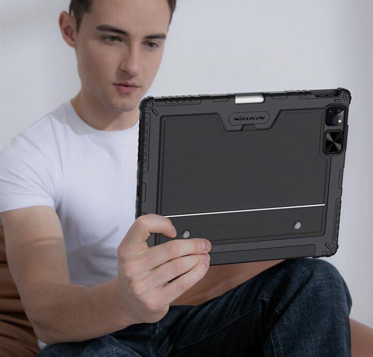 کیف کلاسوری نیلکین مدل New Bumper Combo Keyboard یکی از مهم ترین و کاربردی ترین لوازم جانبی است که شما در کنار iPad خود باید تهیه کنید تا تجربه کاربری خود را با دستگاهتان به حداکثر برسانید. ابتدایی ترین کاری که New Bumper Combo Keyboard برای شما انجام خواهد داد محافظت کامل از تمام قسمت های iPad به خصوص دوربین شماست. پوشش خارجی که ترکیبی با کیفیت از پلی کربنات PC و TPU است و نسبت به نسخه قبلی خود ارتقا یافته است iPad شما را در برابر هرگونه ضربات احتمالی و خط و خش ناشی از برخورد با اشیا تیز حفظ میکند. داشتن چنین کیف محافظی در وهله اول با توجه به ارزش بالای دستگاه شما یک امر غیر قابل چشم پوشی است. قابلیت دیگر قابل ملاحظه این است که این قاب برای شما در زاویه 110 تا 180 درجه به صورت استند در میآید تا بتوایند به سادگی هرچه تمام تر به مشاهده فیلم و سریال و یا انجام طراحی و مطالعه کتاب یا مقالات الکترونیکی خود بپردازید بدون آنکه نگران سر خوردن دستگاه باشید. در چهار گوشه این قاب برآمدگی هایی ایجاد شده است تا در صورت سقوط دستگاه ورود ضربه به دستگاه را به حداقل برساند. یکی از مهم ترین ویژگی های این کیف کلاسوری داشتن یک کیبورد بی سیم با بورد 10 متری است که طراحی آن نسبت به نسخه قبلی خود بهینه تر شده است و دکمه های کیبورد طوری طراحی شده اند که بسیار نرم و بدون ایجاد لغزندگی در هنگام تایپ هستند و کمترین صدای ممکن را در هنگم تایپ ایجاد میکنند. دکمه های میانبر آن نیز نسبت به مدل قبلی بهینه تر شده و دارای تغییراتی شده اند. یک باتری 180 میلی آمپر ساعتی لیتیومی در آن بکار رفته است که تنها با 2.5 ساعت شارژ طی تست ها با حدود روزی 2 ساعت کارکرد تا 55 روز برای کاربر کارایی خواهد داشت، پس نگران اتمام شارژ آن در هنگام سفر و یا محیط های بیرون نخواهید بود. تاچ پد روی کیبورد نیز با قابلیت های مختلفی طراحی شده است و همچنین گزینه ای طراحی شده تا بتوانید آنره قفل کنید تا اگر به صورت تصادفی انرا لمس کردید به مشکلی نخورید. نسخه بلوتوث این کیبورد 3.0 است پس حساسیت عملکرد بالایی از آن خواهید دید و به صورت کلی به همراه این کیف کلاسوری فوق العاده از iPad خود میتوانید به مانند یک مک بوک کامل استفاده نمایید. در قسمت جلویی قاب نیز محلی برای قرار دادن قلم هوشمند اپل و شارژ آن به صورت وایرلس طراحی شده است.