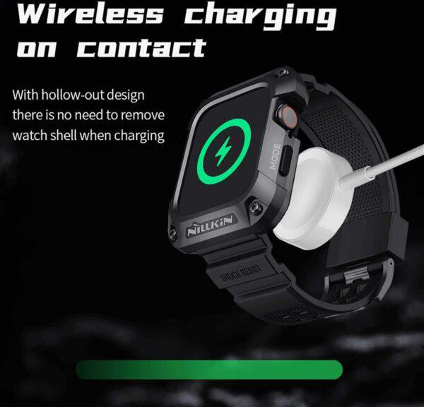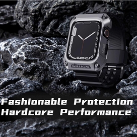 این روزها کاربران زیادی از ساعتهای هوشمند استفاده میکنند.کاربرد این ساعتها برای هرکسی متفاوت است؛ممکن است یک نفر از ساعت هوشمند خود برای ورزش و یا به جای تلفن همراه استفاده کند.کاربرد گسترده و متنوع ساعت هوشمند،باعث میشود ظاهر آن نیز از اهمیت ویژهای برخوردار باشد.زیرا ما با ساعت خود،به مکانهای مختلفی میرویم و این ساعت،بخشی از استایل ما و یک اکسسوری مهم است.اگر به ظاهر و همچنین راحتی خود اهمیت میدهید،بهتر است برای اسمارت واچ خود یک بند مناسب تهیه کنید؛بندی که علاوه بر زیبا بودن،بسیار راحت و نرم باشد، همچنین اگر شما جز افراد باشید که همیشه از ساعت هوشمند در حال استفاده هستید،هر لحظه امکان برخورد ضربه یا افتادن ساعتتان وجود دارد.ممکن است حین ورزش،کار یا حتی خواب دستتان به جایی بخورد یا روی زمین بیافتید. در نتیجه استفاده از ساعت بدون محافظ ریسک بالایی دارد.به خصوص صفحه نمایش آن که بسیار ضعیف و شکننده است.احتمالاً تا به امروز خوش شانس بودهاید که اتفاقی نیافتده است.پس هر چه زودتر باید محافظی مطمئن برای ساعت تهیه کنید.از طرفی خرید این دو محصول به صورت جداگونه بسیار وقت گیر هستش و این امکان هستش که محصولی که خریداری کردین کیفیت مناسب و کارایی لازم را نداشته باشه.پیشنهاد ما به شما خرید کاور نیلکین مدل DynaGuard مناسب برای اپل واچ میباشد.با خرید این محصول شما در اصل با یک تیر دو نشون زدین:هم یک بند باکیفیت خریداری کردین ،هم یک کاور با کیفیت و مقاوم.کاور اپل واچ این محصول از ترکیب آلیاژ فلز و TPU ساخته شده که دارای طراحی بسیار عالی و قوی شبیه به زره های مکانیکی میباشد که دارای ظاهری بسیار زیبا و شیک هستش و در برابر ضربه و سقوط مقاومت فوق العاده بالایی دارد.همچنین به دلیل داشتن لبه های برجسته جلوی وارد شدن آسیب به صفحه نمایش اپل واچ را میگیرد.بند این محصول از جنس پلاستیک نرم(TPU)میباشد.بند این ساعت دارای قفل سگکی دو پایه فلزی می باشد که به خوبی ساعت را روی دست شما قفل میکند و شما بدون هیچ نگرانی با خیال راحت مشغول باشگاه،ورزش، کوهنوردی و کمپینگ یا….شوید.برای شارژ بیسیم لازم نیست که ساعت را از کاور در بیاورید و به راحتی ساعتتان را شارژ کنید.این محصول به صورت کاملا دقیق و اندازه برش خورده،نصب این محصول بسیار آسان میباشد.
