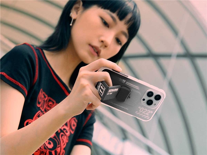 قاب آیفون ۱۳ پرو مکس برند اسکین آرما مجهز به استند مغناطیسی نیز می‌باشد. با گسترش آن به صورت خودکار، می‌توانید از تماشای ویدئوها و شرکت در تماس‌های تصویری با دست‌های آزاد لذت ببرید. همچنین، با یکپارچه شدن با دسته SnapStand، می‌توانید در هنگام فیلم‌برداری عکس‌ها و ویدئوها با قاب راحت دست و حالت دستگیره‌ای استفاده کنید تا تصاویر بهتری بگیرید.