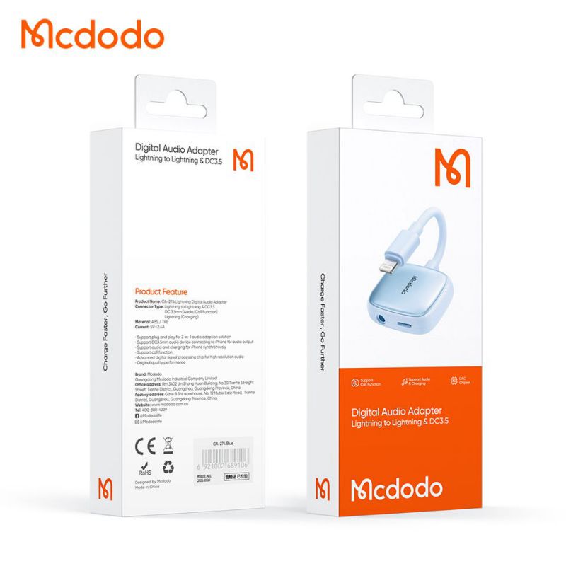 تبدیل لایتنینگ به جک 3.5 میلیمتری AUX + پورت لایتنینگ مک دودو مدل MCDODO CA-274
