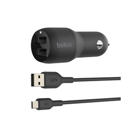Belkin BoostCharge Dual USB-A Car Charger 24W+Cable USB-A to USB-C