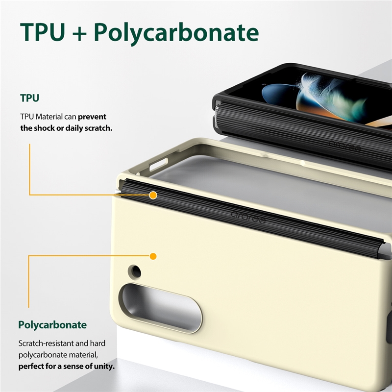 قاب گوشی دار آراری Z Fold 5 به صورتی طراحی شده است که به واسطه فریم پلی کربناتی داخلی خود میتواند ضربات ناگهانی وارده به گوشی را جذب کند.
