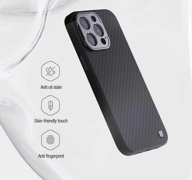 کاور نیلکین مدلCarboProp Magneticاز ترکیب پلاستیک سخت،TPUو روکشFiberساخته شده است همچنین قاب ترکیبی ازعناصر کلاسیک،مد و محافظ میباشد و دارای محافظ دوربین از جنس فلز است. این قاب با داشتن اسلاید کمرا استند مگنتی محافظ بسیار خوبی برای دوربین گوشی موبایل شما میباشد که میتوانید به عنوان پایه استند رو میزی هم استفاده کنید.همچین از قابلیت شارژ بی سیم مگ سیف مغناطیسی نیز پشتیبانی میکند که ارزش خریدن این کاور را چند برابر می نماید.این کاور طبق گفته های شرکت سازنده 5 برابر مقاوم تر از فولاد میباشد.سطح بیرونی این قاب دارای خطوط مورب فیبری می باشد که خواصی مانند ضد سایش، ضد لغزش ، ضد گرد و غبار و ضد اثر انگشت به همراه دارد، تمیز کردن این قاب محافظ بسیار آسان است.کاور نیلکین مدل CarboProp Magnetic تمامی پشت گوشی،لبه های بالا،پایین و اطراف گوشی را تحت پوشش قرار میدهد و در برابر ضربه ها،محافظت بسیار فوق العاده ای از گوشی شما انجام می دهد.کاور نیلکین مدل CarboProp Magnetic کلید های گوشی موبایل،تحت پوشش و محافظت خود قرار میدهد و عملکرد عالی ای دارد.با توجه به هندسه و طراحی زیبای گوشی،پایین و بالا این قاب بسته می باشد تا دسترسی بهتری به پورت های گوشی و محافظت بیشتر انجام شود همچنین روی بدنه این گارد خط های موربی وجود دارد که ظاهری زیبا و شیک به گوشی شما می دهد.کاور نیلکین مدل CarboProp Magnetic دارای محافظ کمرا استندی می باشد که میتوان به عنوان پوشش و محافظ لنز های دوربین استفاده کرد و یا به عنوان پایه استند رو میزی از آن استفاده کرد که دارای لولای فلزی با کیفیتی می باشد که به راحتی باز و بسته می شود.ضخامت این بخش در حدی است که چندان روی ظرافت گوشی تاثیر منفی نداشته باشد و بتوانید به شکل طولانی مدت بدون دل‌زدگی، از قاب استفاده کنید.در پشت قاب کیت مخصوص سازگار با شارژر و باتری های بی سیم(Magsafe) وجود دارد.ویژگی بعدی کاور نیلکین مدل CarboProp Magnetic نسبت به دیگر کاور ها، بهره مندی از قابلیت مگنتی است.به جهت این ویژگی شما می توانید به سادگی از شارژرهای مگ سیف استفاده کرده و مانعی از این بابت برای شما وجود نداشته باشد.در این رابطه باید گفت که شما می توانید بدون نیاز به در آوردن گوشی از قاب، شارژر MagSafe را به پشت گوشی(روی قاب) زده و به راحتی گوشی خود را شارژ کنید.