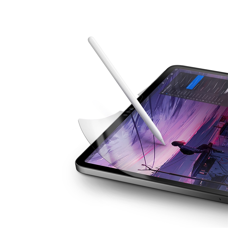 با این محافظ صفحه نمایش جدید یونیک با بافت کاغذ مانند در iPad بنویسید یا طرح کنید. بافت ریز طبیعی آن با حساسیت لمسی فوق العاده، مقاومت نوری کاغذ را تقلید می کند تا بتوانید با دقت و کنترل بهتری بنویسید و طرح بزنید. سطح مات ضد تابش در برابر لک اثر انگشت مقاومت می کند و ساییدگی نوک مداد اپل را کاهش می دهد.  پشتیبانی از Face ID با بریدگی دوربین برای مدل های سازگار از ویژگی های دیگر این مدل می باشد .