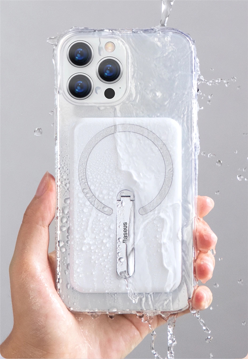 همانطور که پیش از این اشاره کردیم قاب مگنتی ایفون 13 پرو مکس بیسوس دارای یک پایه کوچک است که اجازه میدهد تا گوشی را به صورت افقی و عمودی روی میز قرار دهید. بر خلاف نسخههای قدیمی که لولای پایه در وسط بدنه قرار داشت، در این محصول لولا میتواند در قسمتی پایینتر قرار گرفته تا جلوی مگنتهای گوشی را نگیرد.