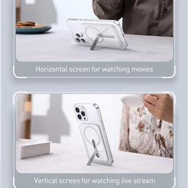 گوشیهای اپل از جایی به بعد به شارژ وایرلس مگنتی مجهز شدند و این مسئله نیاز به قابهایی که از فناوری مگ سیف پشتیبانی کنند را در بازار ایجاد کرد. از این رو میتوانیم قاب های مگنتی زیادی از قبیل قاب شفاف آیفون Apple iPhone 13 Pro Max Baseus Magnetic را در دسته بندی این گوشی موبایل مشاهده کنیم. این قاب طوری طراحی شده که هیچ ایرادی در عملکرد مغناطیسی این گوشیها ایجاد نکند و جلوی شارژ با مگ سیف را نگیرد. به علاوه شما میتوانید از استند کوچکی که در پشت قاب قرار دارد برای نگه داشتن آن روی میز و فیلم دیدن استفاده کنید.
